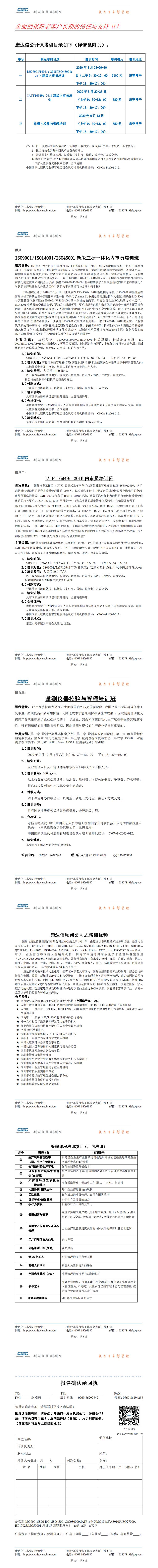 东莞康达信2020年8月公开班培训计划
