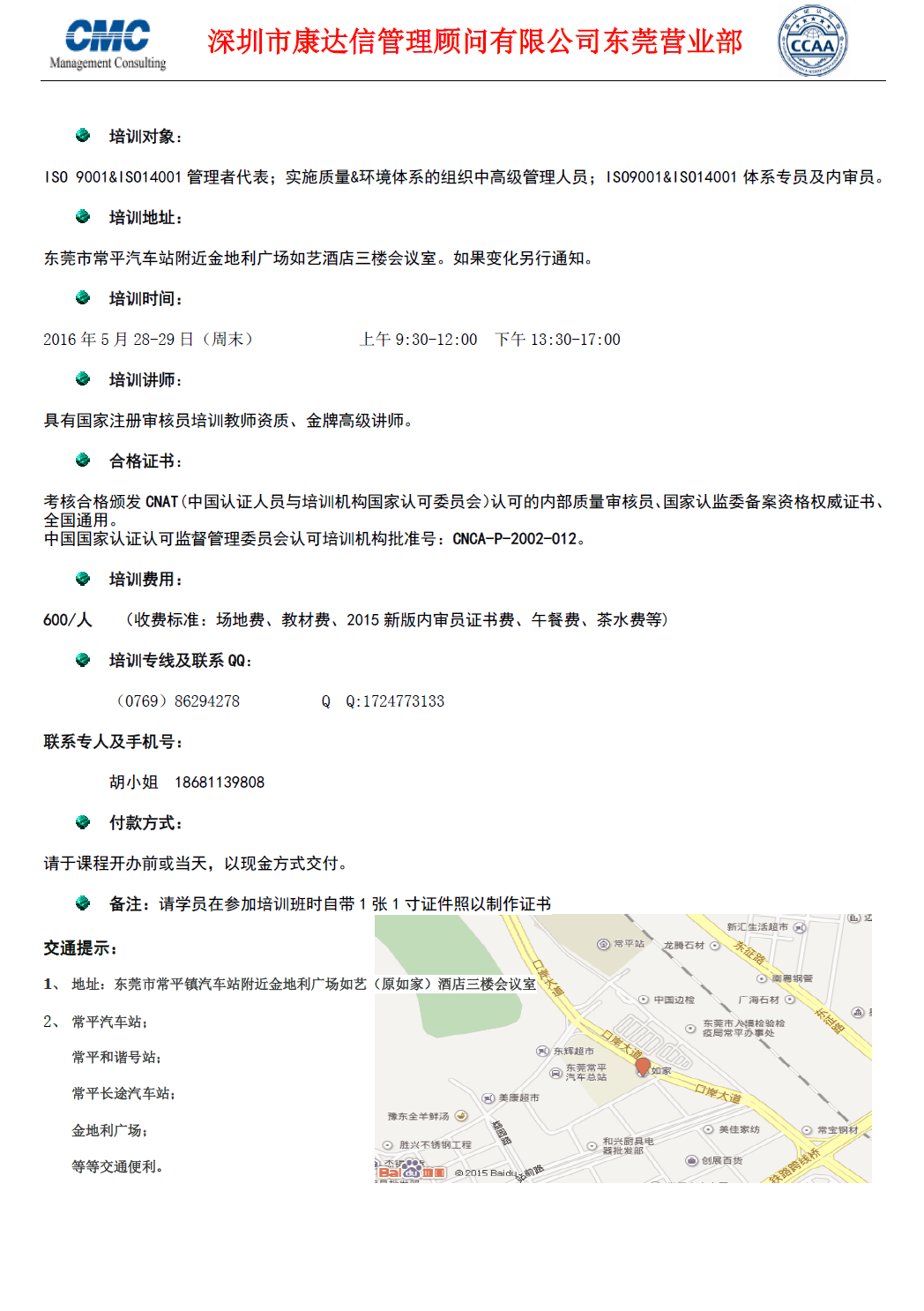 东莞康达信2016年5月份最新开班