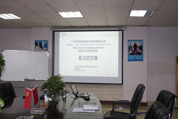 2017年8月31日,东莞康达信和广东晖速通信技术股份有限公司及合作,进行ISO9001:2015/QC080000:2017/ISO14001:2015/ISO45001:2017质量/HSF/环境/职业健康安全四大管理体系转版咨询。