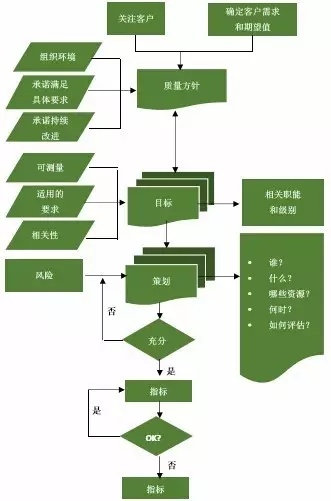 质量目标要与质量方针一起建立并保持一致,新标准定义目标为需要实现的结果。目标始于企业层面指出外部具体要求,例如监管要求和与顾客相关的要求,通常有 5 至 10 个高阶层的目标。