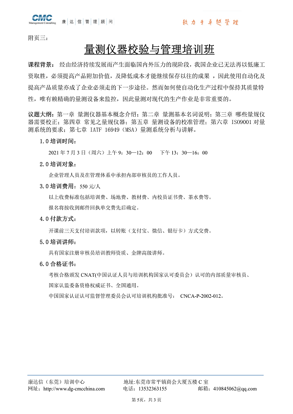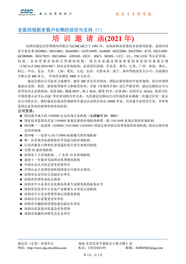 东莞康达信2021年6月份最新培训计划