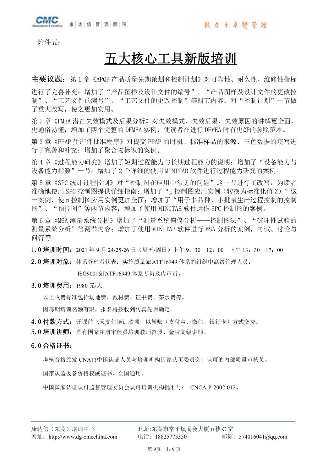 东莞康达信2021年9月份最新培训计划