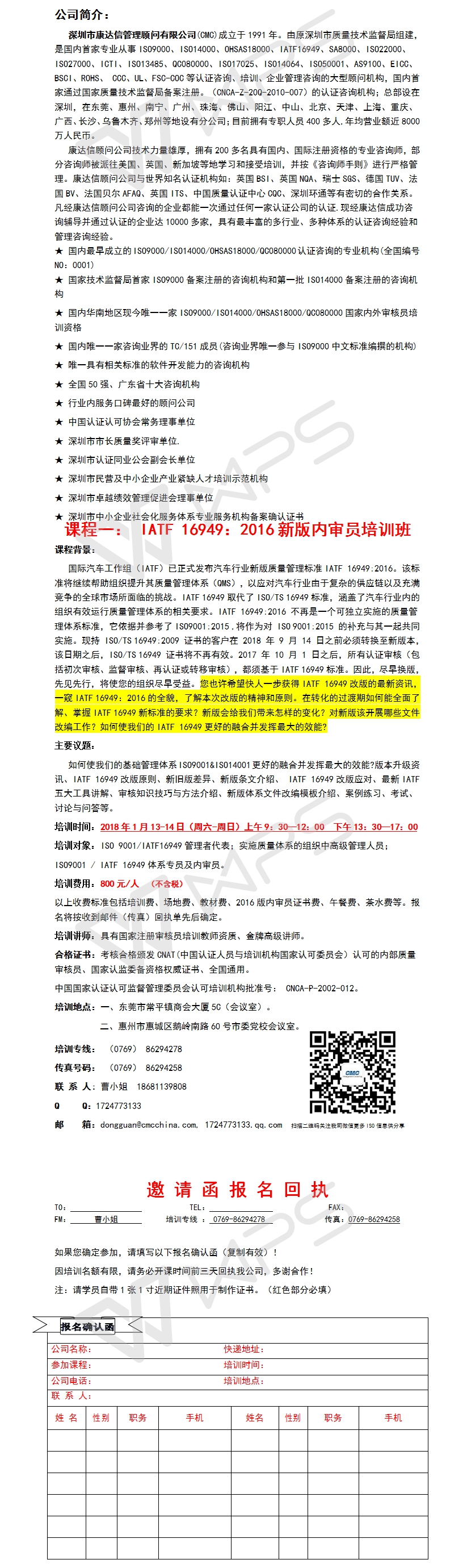 东莞康达信2018年首期IATF16949新版内审员培训