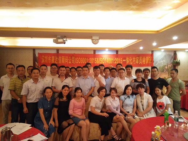 热烈祝贺东莞康达信7月份ISO9001:2015&ISO14001:2015新版内审员培训班圆满结束!
