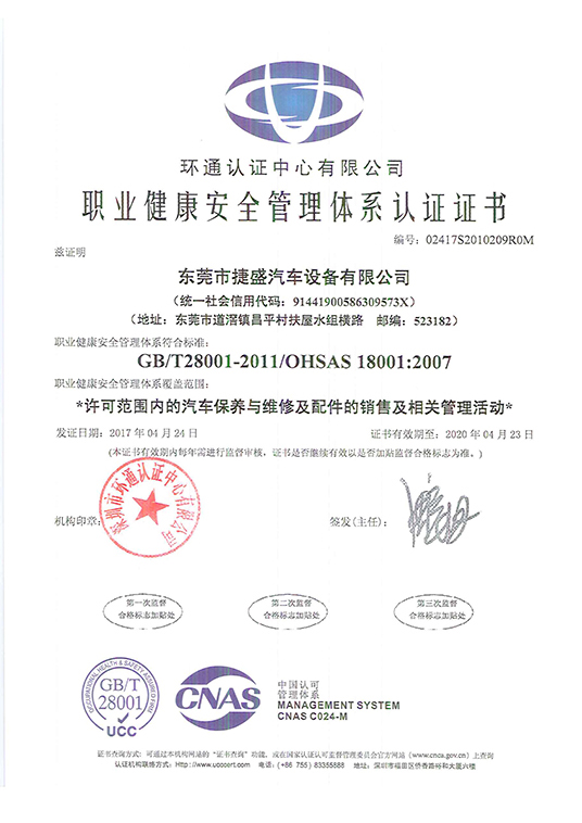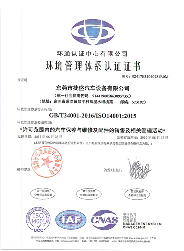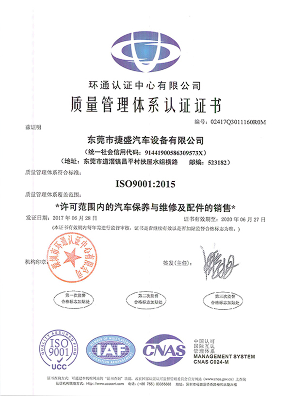 恭贺 东莞市捷盛汽车设备有限公司 在东莞康达信辅导下顺利通过